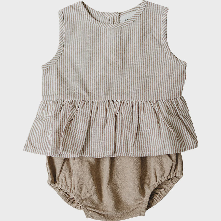 Tan Stripes Peplum Set